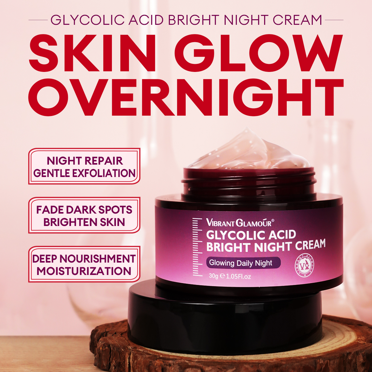 کرم شب روشن کننده گلیکولیک اسید ویبرانت گلامور